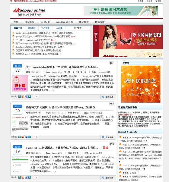 很难得一见的一款特别优秀的国人原创wordpress主题,打开演示地址看看首页,首先第一感觉像一个门户网站,其次在导航下面的排版是很有新颖的,左边是一些文章分类,右边则是幻灯图片,目前位置好像还没看到这样排版的wp主题。这是这款wordpress主题一大亮点。接着往下面看,我们可以看到左边有缩略图,总有可以放一些网盟的广告。总的色调清爽自然,我相信很多国人都会喜欢这款wordpress主题。