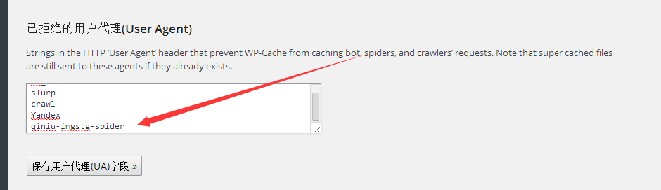 使用了WP Super Cache插件的小伙伴请将七牛的ua加入到禁止缓存列表中,如下图: